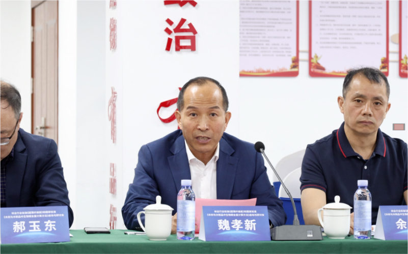 会议首先由新港集团董事长魏孝新致辞,他对出席本次会议的专家及参会代表表示热烈的欢迎,并详细介绍了在李坚院士新港工作站的带动下,新港集团成功实现了院士项目——仿生胶黏剂在三大板的成功应用,打造新港仿生无醛轻质高强刨花板、新港仿生无醛超薄纤维板、新港仿生F-OSB等产品。同时,希望在与会专家和代表的共同努力下,对标国际领先水平,共同探讨和研判具有高度指导意义的国家标准、行业标准,为木业生产制造的引领发展指明方向。最后他预祝本次会议圆满成功!