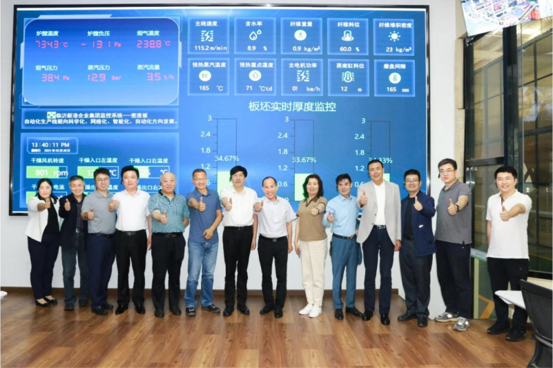 会议结束后,与会专家一同参观了新港仿生超薄纤维板生产线。新港仿生超薄纤维板生产线全面引进亚联高精度铺装带缓排气预压系统、亚联超高速连续平压机、安德里茨热磨机、高精度双控高压施胶系统等国内外先进设备、控制系统,实现无人车间,全面采用全自动设备工艺,确保板材均质、纯净、环保。