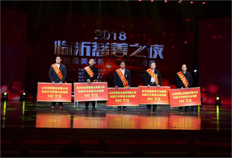 2018年1月25日,2018“临沂慈善之夜”,新港集团捐赠100万元。